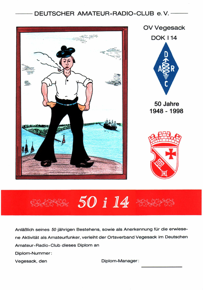 Nach dem Inkrafttreten bekamen von den 65 Sende- und Empfangsgenehmigungen im Distrikt Nordsee zwei OM`s aus dem OV Vegesack ihr Rufzeichen. Es waren Heinz Jäger als DL1UE und Heinz Scheele als DL1UF.